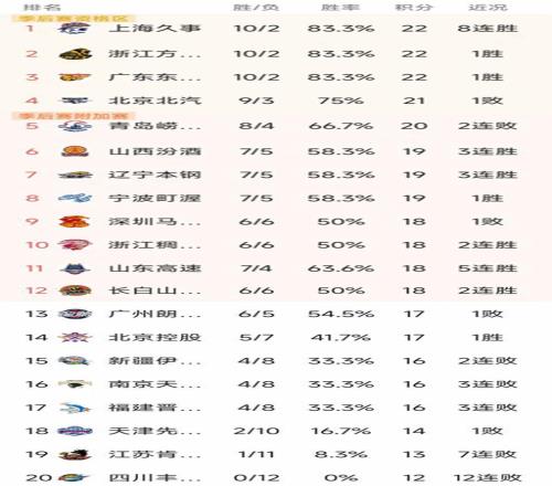 CBA最新积分榜