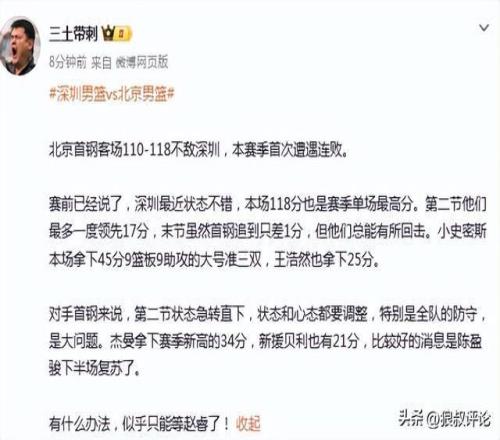 赛后,北京爆冷不敌深圳引发外界的热议。