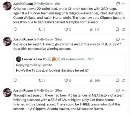 由于在开局表现不佳后,快船队已经将常规赛目标调整为附加赛,这意味着,快船队距离冲击附加赛目标仅差反超灰熊这一步,后者刚传出将莫兰特摆上货架的消息,内部正处于动荡之中。