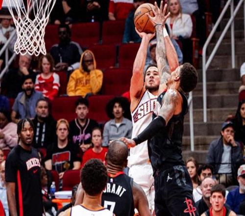 最后时刻,阿门汤普森挺身救主,打进2+1追平比分。随后杜兰特相信阿门,让他去完成反超球。可惜阿门一个漂亮的转身,没有把球扔进篮筐。还好布克也拉胯了,他压时间投三分结果是一个三不沾,火箭直接收下。最后一攻,留给火箭5秒。杜兰特在右侧45度角接球,运两步就是一个熟悉的干拔三分命中,这就是“死神镰刀位”的经典一击,当年在勇士,总决赛连续对詹姆斯完成45度斩杀。时间仅剩1.1秒。太阳最后一攻,奥科吉完成干扰,布克仓促出手不中,火箭惊险取胜。