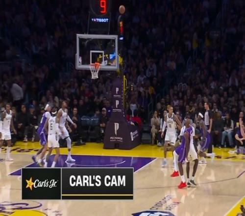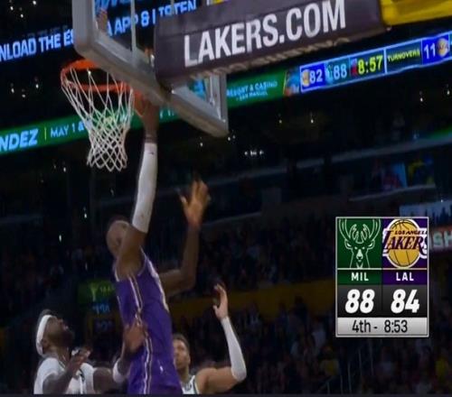 奋力追击!詹姆斯里突外投连得5分帮助湖人迫近比分打停雄鹿