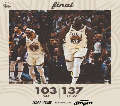 体育播报1月10日宣 NBA常规赛,勇士137-103大胜国王。