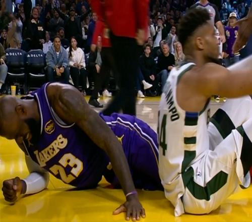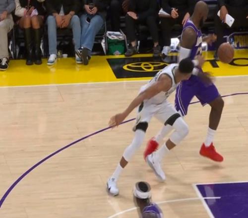詹姆斯超高难度后仰+抢断字母上篮反超比分落地差点受伤