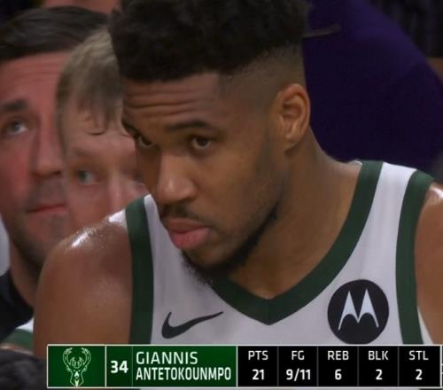 本场比赛字母哥出战31分钟11投9中,罚球4中3砍下21分6篮板5助攻2抢断2盖帽,正负值+6。