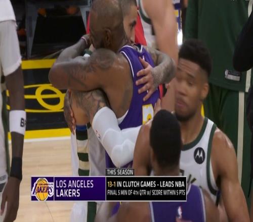 这是湖人本赛季第14次经历关键时刻(最后5分钟分差5分以内)的比赛,此前他们13场全胜,今天不败金身被破。