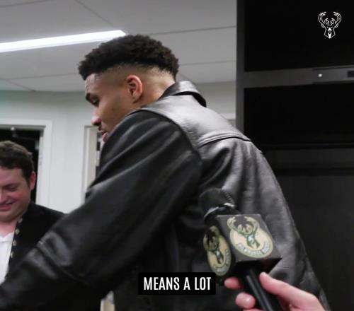 字母哥赛后在采访时展示詹姆斯送给他的签名球衣:这对我意义重大