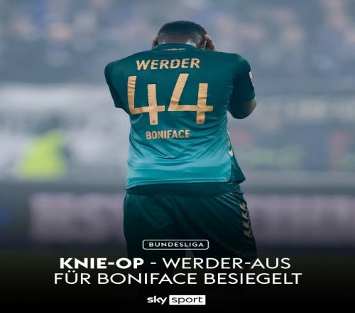 体育播报01月10日宣 不莱梅官方消息,25岁前锋博尼法斯接受膝盖手术,预计赛季报销。