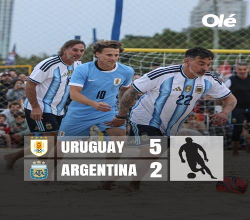 体育播报1月10日宣 乌拉圭潘塔德尔埃斯特的曼萨海滩进行了一场五人制足球比赛,乌拉圭传奇队5-2战胜了来访的阿根廷传奇队。