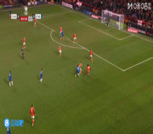 第45+4分钟,切尔西左侧肋部位置送出传中,第一点吉乌头球摆渡,禁区左侧哈托跟进凌空爆射入网!切尔西1-0领先↓