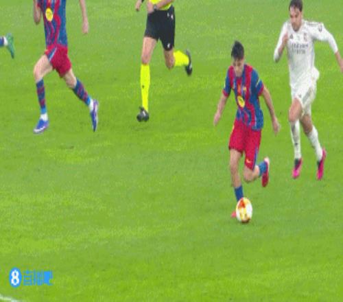 体育播报01月12日宣 西超杯决赛巴萨vs皇马,第56分钟佩德里被阿森西奥铲倒,拉菲尼亚冲上去为队友出头,被巴尔韦德推到地上滚了一圈,巴尔韦德吃到黄牌!