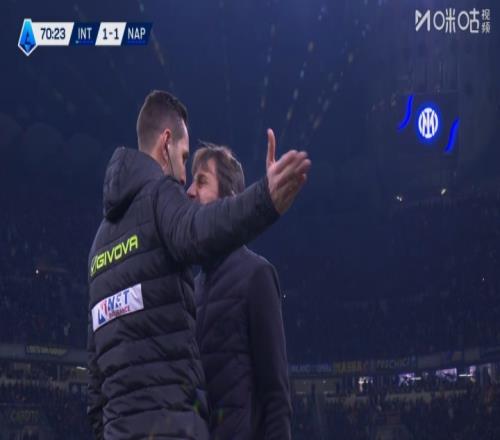 体育播报01月12日宣 国米vs那不勒斯第71分钟,拉赫马尼禁区内踩中姆希塔良,裁判看VAR后判点,恰尔汗奥卢打进!此时比分变为国米2-1领先!