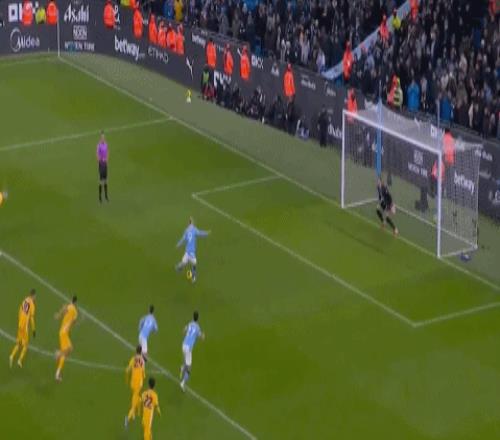 第81分钟,布莱顿再次后场配合失误,谢尔基断球无私横传,但哈兰德近距离爆射,竟然被费布鲁亨稳稳没收,浪费绝佳机会!