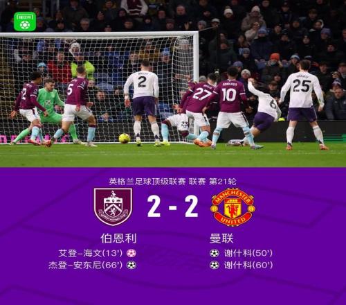 北京时间1月8日4:15,英超第21轮焦点战,曼联作客摩亚球场挑战伯恩利,本场主裁判为阿特维尔。上半场,汉弗莱斯传中打在海文脚上变线入网。下半场,谢什科先后接B费和多古的助攻破门上演梅开二度,杰登-安东尼兜射救主。最终,曼联客场2-2伯恩利,遭三连平。